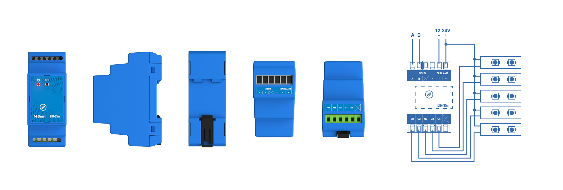 Modulis maitinamas 12-24V DC įtampa. Kiekvieno kanalo apkrova yra 2,5 A. Ryšys su Sinum centriniu įrenginiu vyksta laidiniu būdu per Sinum SBUS magistralę.
