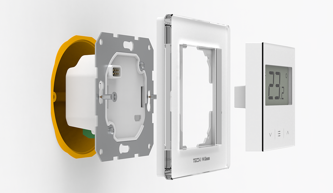 Stikliniai rėmeliai leidžia konfigūruoti jungiklių plokštes ir montuoti įrenginius standartinėse 60 mm skersmens dėžutėse, tiek horizontaliai, tiek vertikaliai. Jų dėka galima lanksčiai konfigūruoti šviesos jungiklius, kambario reguliatorius ar žaliuzių jungiklius, pritaikant instaliaciją prie individualių vartotojo poreikių ir pageidavimų. Ši sistema užtikrina lankstumą ir estetiką, sujungdama modernų dizainą su funkcionalumu.