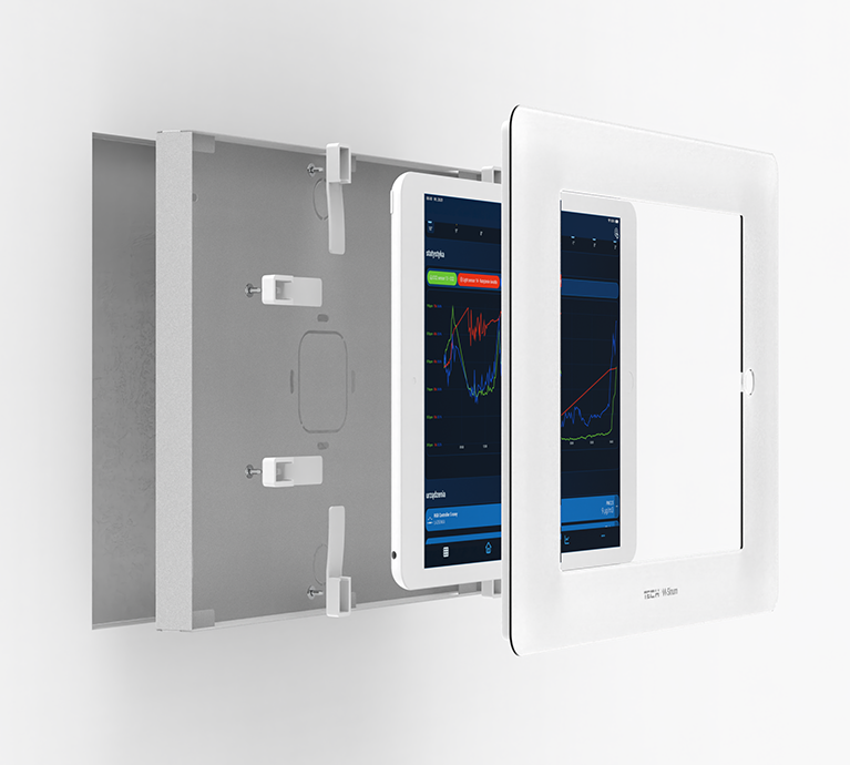FT-01i rėmelis yra elegantiškas ir funkcionalus sprendimas, skirtas Apple iPad 10,2” planšetinio kompiuterio montavimui ant sienos. Dėl montavimo po tinku konstrukcijos jis užtikrina estetišką ir tvarkingą apdailą, tuo pačiu leidžiant paslėpti maitinimo laidus.