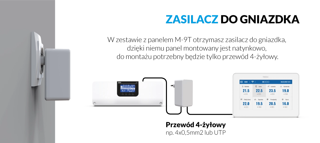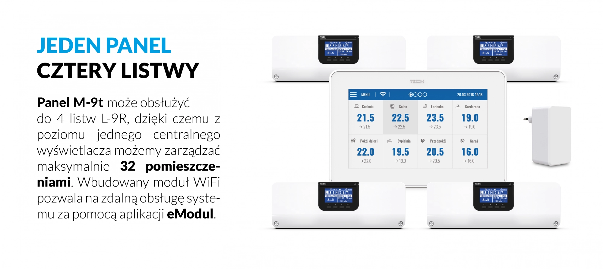 M-9 T – tai įrenginys, palengvinantis temperatūros valdymą patalpose su įrengta 9 serijos grindinio šildymo sistema. Tai dedikuotas sprendimas, skirtas bendradarbiauti su L-9 R valdikliu, sukurtas taip, kad būtų patogu valdyti pavaldžius kambario reguliatorius sistemoje.