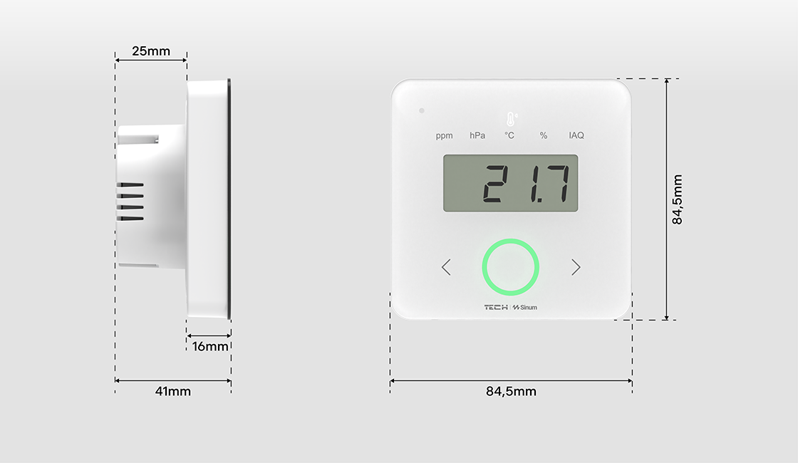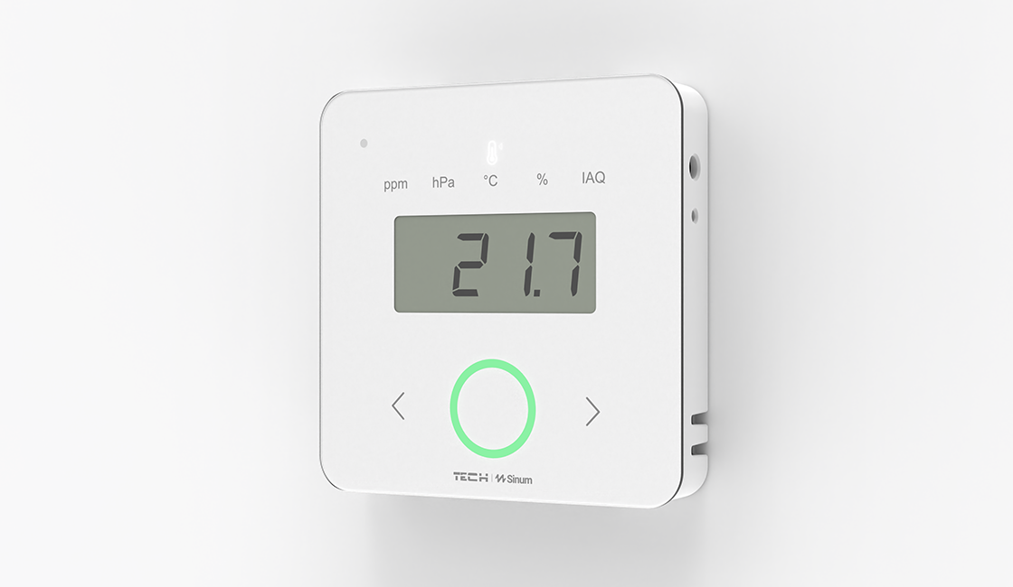 Multisensorius matuoja oro kokybę (IAQ), leisdamas nuolat stebėti sąlygas ir rūpintis sveiku patalpų klimatu.