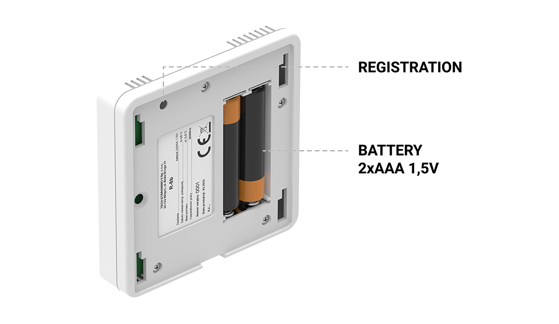Kambario reguliatorius R-8b sukurtas atsižvelgiant į patogų ir saugų montavimą ant sienos. Įrenginys turi specialią pakabą, leidžiančią montuoti tiek ant išsiplėtimo kaiščių, tiek tiesiogiai ant elektros dėžutės.