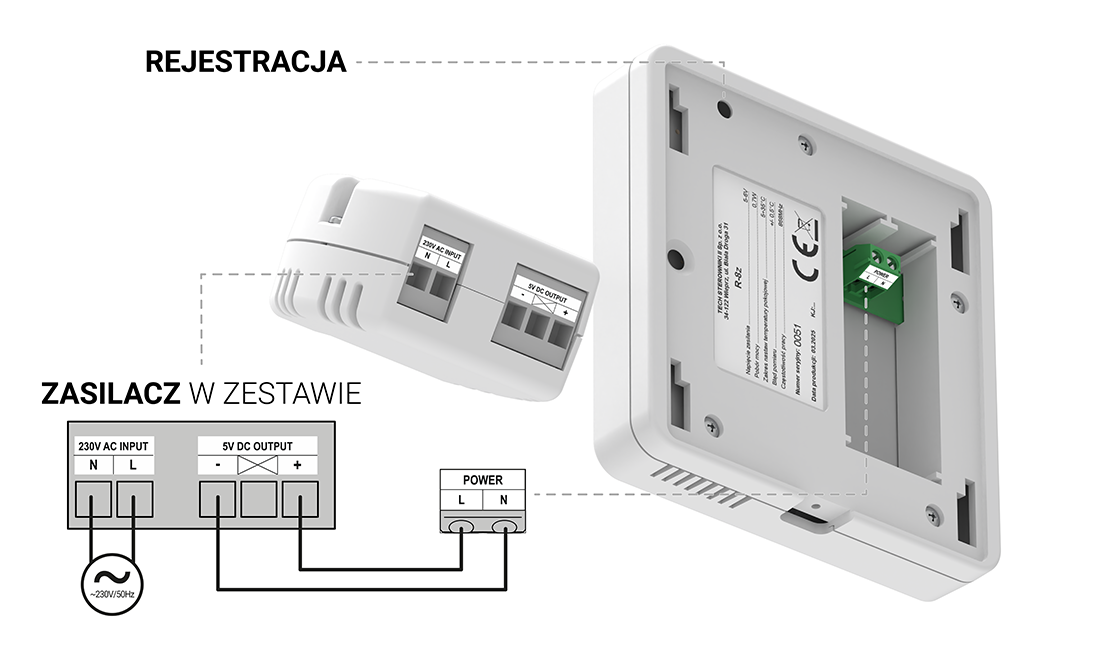 Registracija – Mygtukas, esantis galinėje įrenginio dalyje, naudojamas reguliatoriaus registracijai sistemoje. Jį paspaudus pradedamas poravimo su centriniu įrenginiu procesas. Po sėkmingos registracijos reguliatoriaus ekrane pasirodo atitinkamas pranešimas.