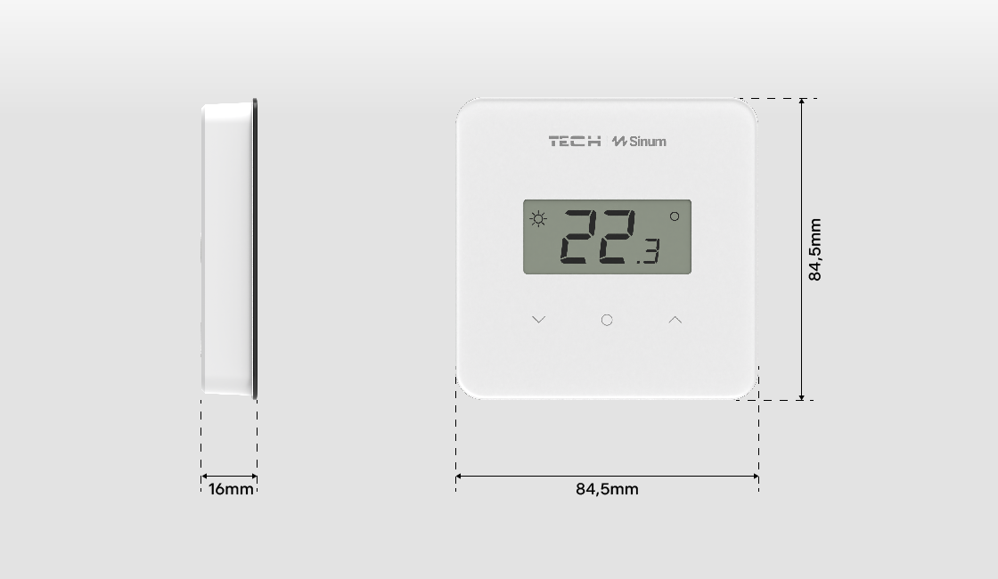 Reguliatorius siunčia esamą temperatūrą Sinum centriniam įrenginiui, kuris palygina ją su nustatyta verte ir valdo šildymą arba vėsinimą. Dėl šildymo/vėsinimo režimo visada turėsite idealią temperatūrą.
