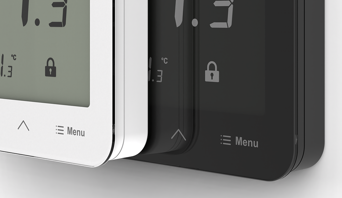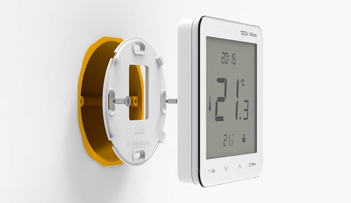 R-S3 reguliatorius turi aiškų jutiklinį ekraną su stikliniu priekiniu skydeliu. Jame yra drėgmės jutiklis ir galimybė matuoti grindų temperatūrą (su NTC jutikliu).
