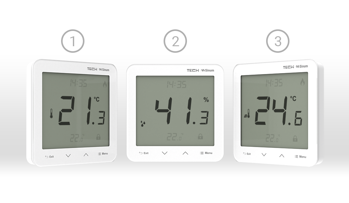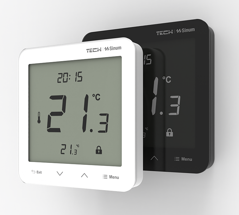Reguliatorius siunčia esamą temperatūrą Sinum centriniam įrenginiui, kuris palygina ją su nustatyta verte ir valdo šildymą arba vėsinimą. Dėl šildymo/vėsinimo režimo visada turėsite idealią temperatūrą.