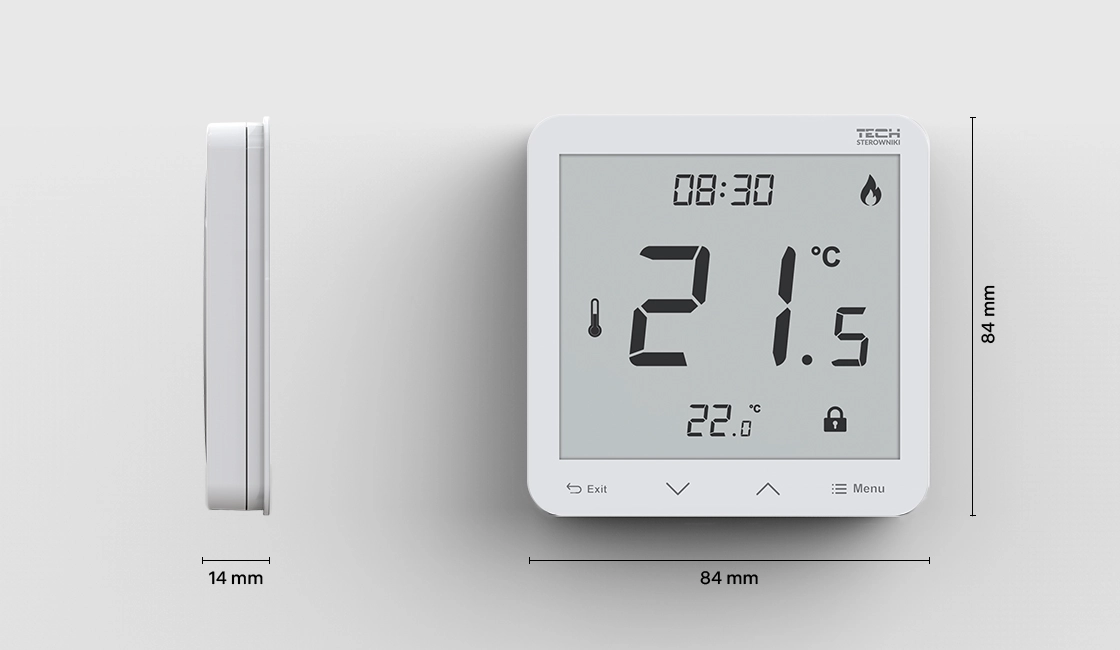 - Įmontuotas kambario jutiklis