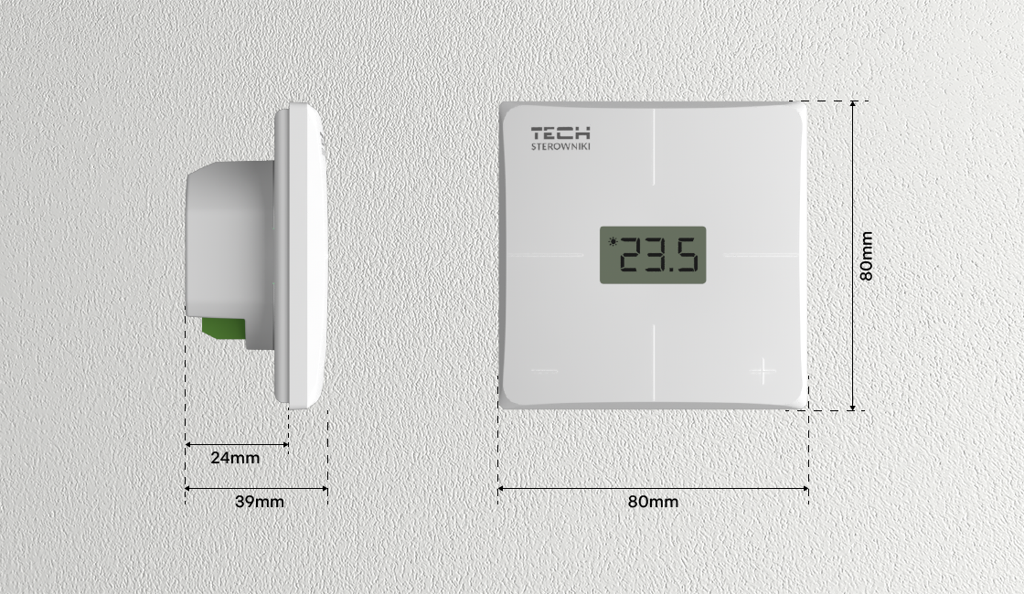 Dviejų būsenų temperatūros reguliatorius, maitinamas 230V įtampa, skirtas L-5s juostai, turi oro temperatūros jutiklį. Intuityviame ekrane rodoma informacija apie esamą temperatūrą. Mechaniniais mygtukais galima keisti nustatytą patalpos temperatūros vertę. LCD ekranas be apšvietimo. Montuojamas po tinku.