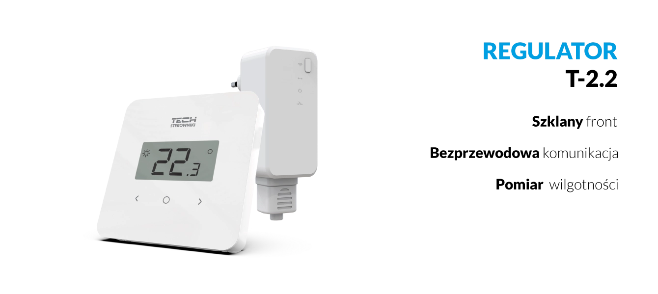 T-2.2 tipo kambario reguliatorius skirtas valdyti šildymo įrenginius (pvz., dujinius, alyvinius, elektrinius katilus arba katilo valdiklį). Šio reguliatoriaus tikslas – palaikyti nustatytą temperatūrą patalpose, siunčiant signalą šildymo įrenginiui (atidarant kontaktą) apie patalpos įšilimą iki reikiamos temperatūros.