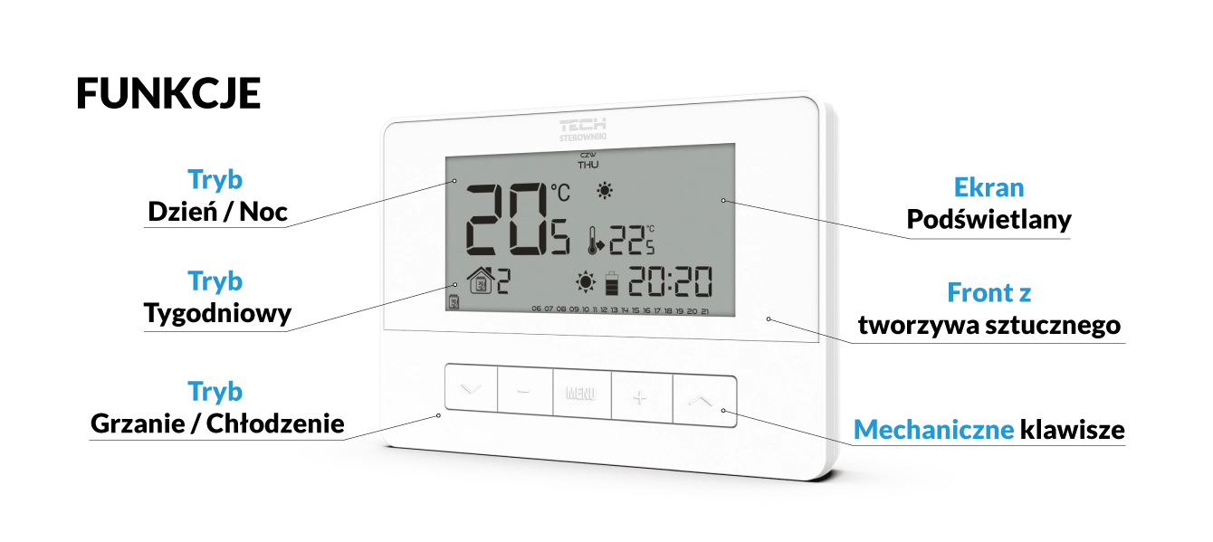 Aprašymas apie valdiklių funkcijas ir įrangą galioja tik tiems produktams, kurie yra prieinami tam tikrais kalendoriniais metais. Norint patvirtinti konkretaus įrenginio galimybes, būtina kreiptis į TECH STEROWNIKI techninį-serviso skyrių.