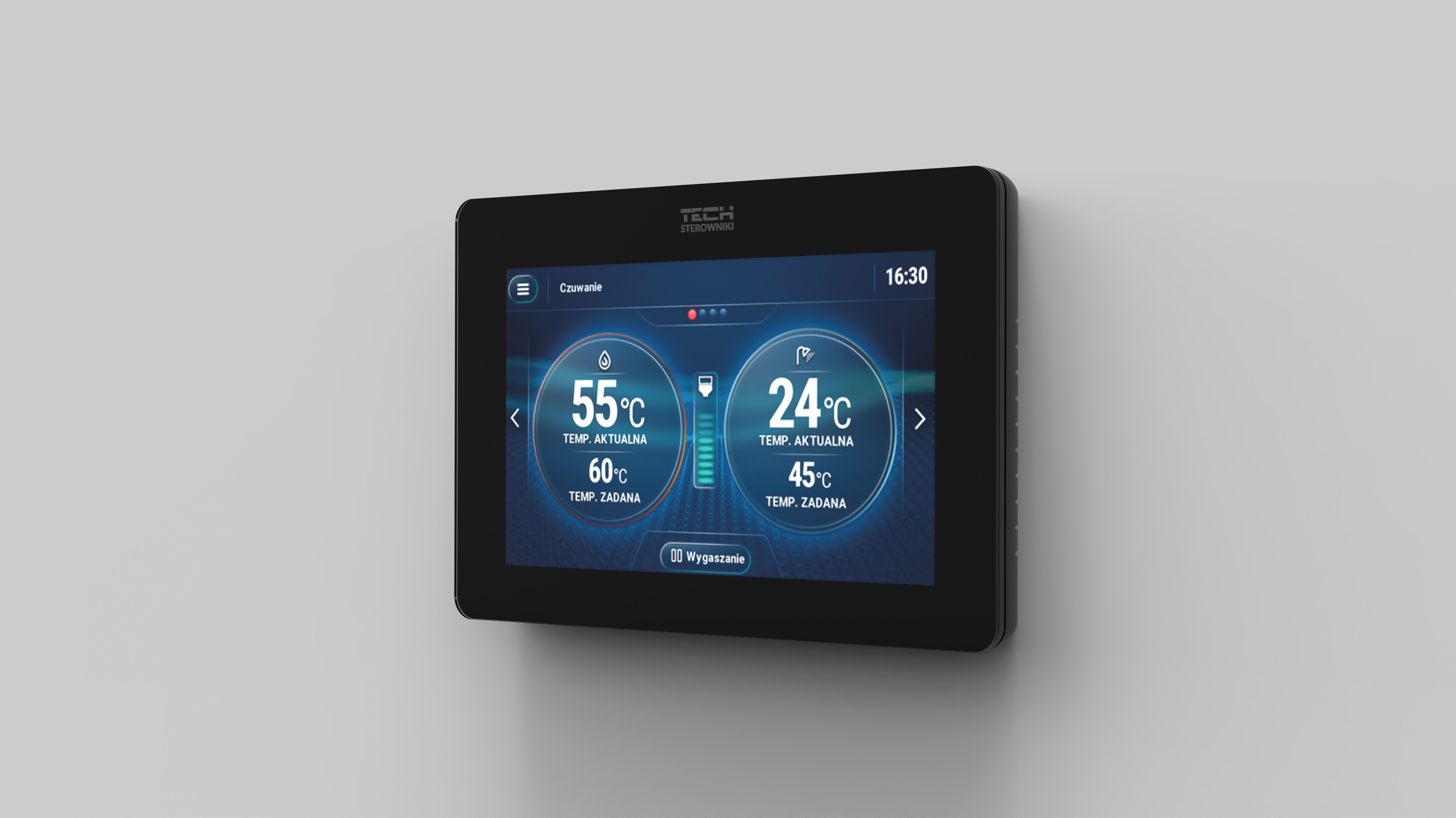 Šis skydelis yra intuityvus šildymo sistemos valdymo centras, sujungiantis funkcionalumą su estetišku dizainu. Jis leidžia patogiai valdyti visus pagrindinius katilo parametrus, aiškiai ir skaidriai pateikdamas duomenis. TFT ekranas, jautrus lietimui ir logiškas meniu užtikrina, kad kasdienis naudojimas yra greitas, paprastas ir patogus vartotojui.