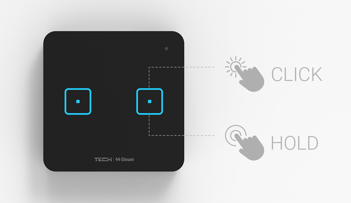 Vienkartinis, greitas mygtuko paspaudimas aktyvuoja pagrindinę įrenginio funkciją, veikiant kaip klasikinis šviesos jungiklis. CLICK funkcija užtikrina paprastą ir intuityvią naudojimą.