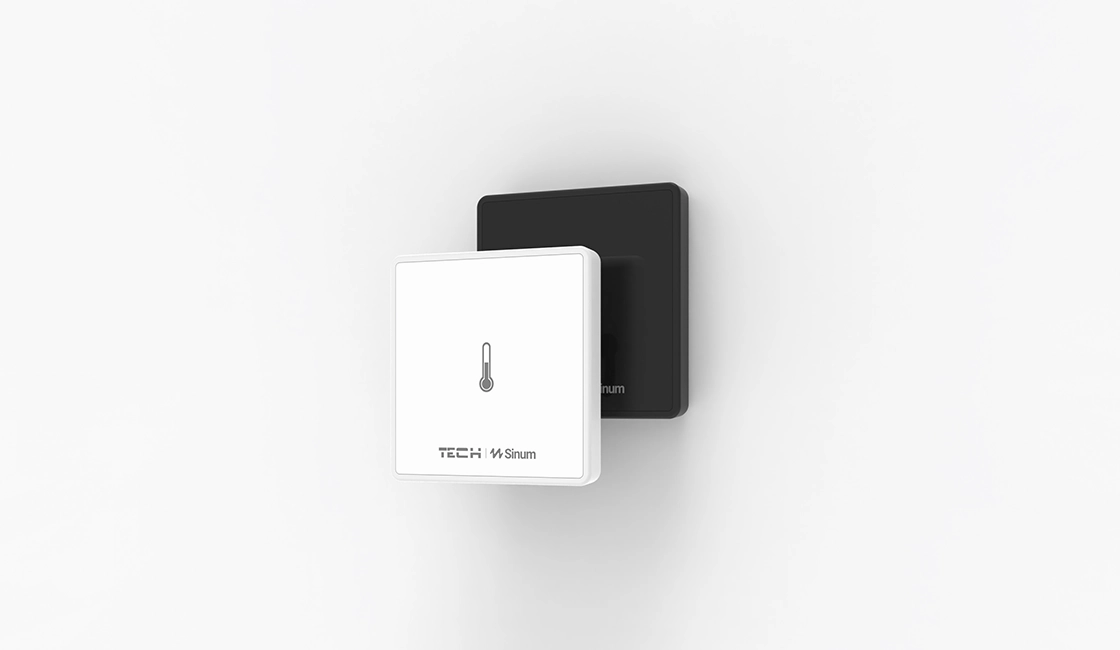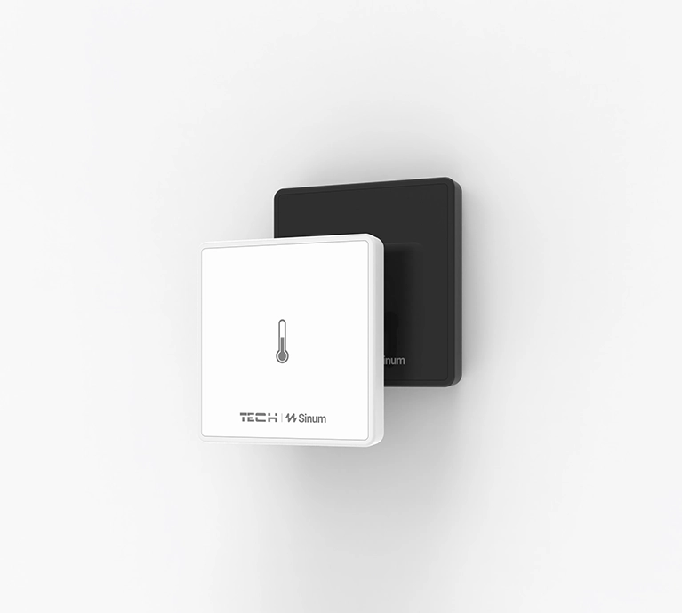 C-S1p is a dedicated temperature sensor that connects via a wired interface to the CP-04m control panel, which then transmits the data to the Sinum control unit. Based on its readings, the system manages heating devices.