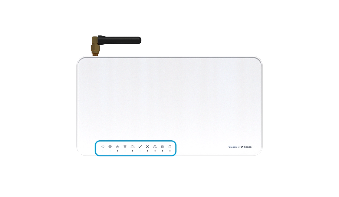 The EH-01 control unit is equipped with LED indicators located on its top panel. These LEDs provide information about the current operating status of the device, making it easy to check what is happening with the unit and the status of its network connection. This allows the user to conveniently monitor the operation of the control unit and quickly obtain information about its current state.