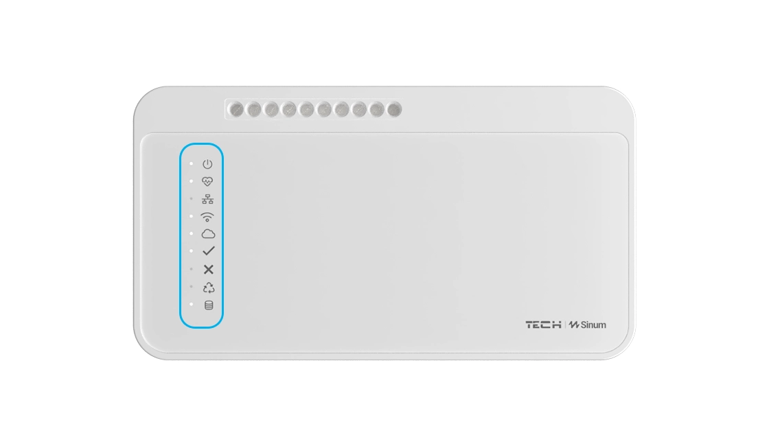 The EH-01 Lite control unit is equipped with indicator LEDs located on its top panel. These LEDs provide real-time information about the device’s operating status, allowing for a quick check of the controller’s condition and its network connection status. This makes it easy for the user to monitor the unit’s performance and stay informed about its current state.