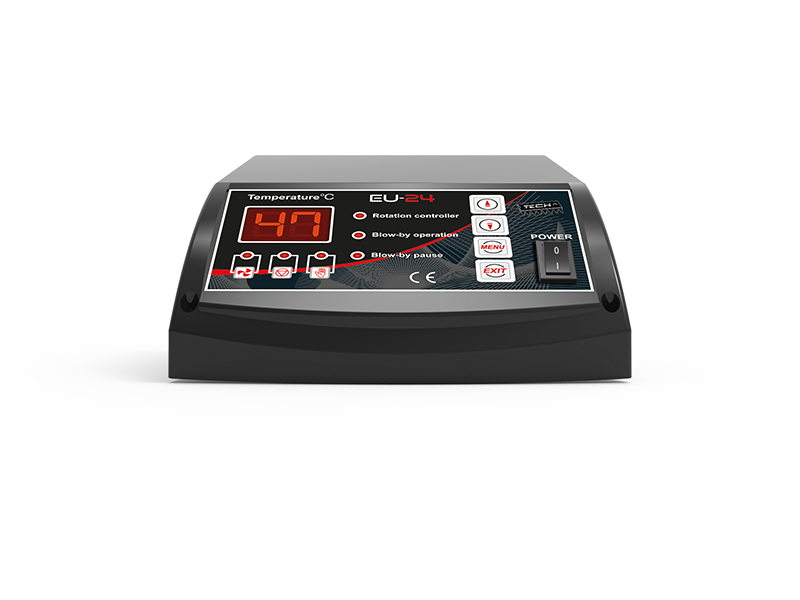 The EU-24 microprocessor regulator is intended to control a CH charging boiler equipped with a fan and a CO water circulation pump. Its task is to maintain the set temperature via the use of a fan. The controller’s casing is adapted for assembly on the boiler.