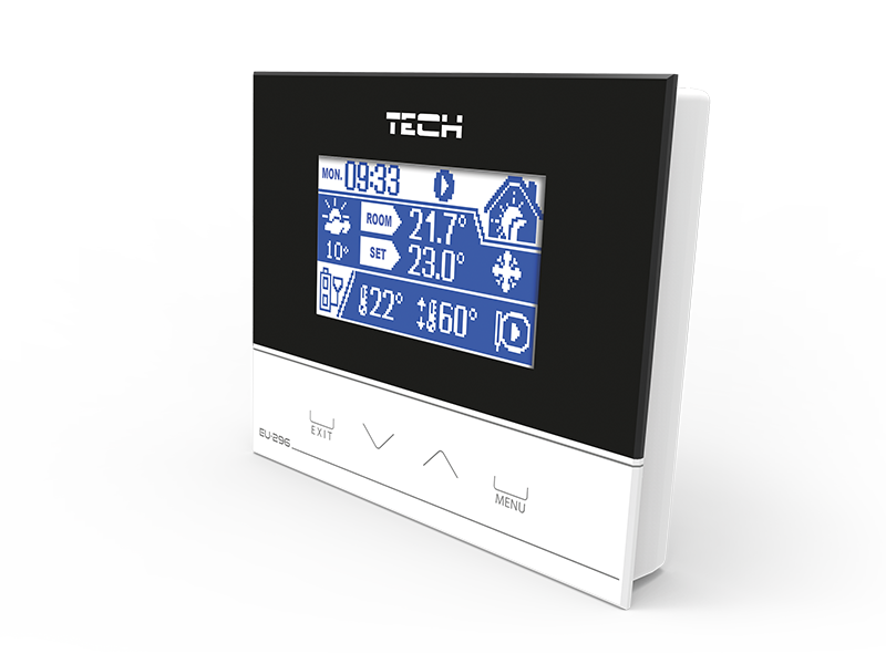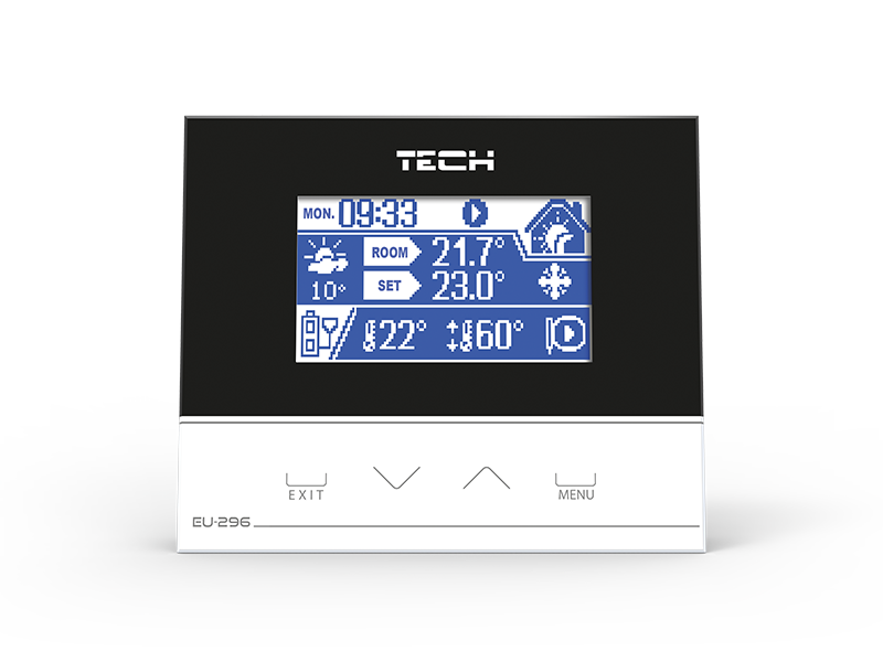 The type EU-296 room regulator is intended to control the CH, DHW and room temperature. It may also perform a weekly heating program. The application of the regulator provides convenient control of temperature at home and the temperature of hot tap water directly from the apartment without the need to go to the boiler room.