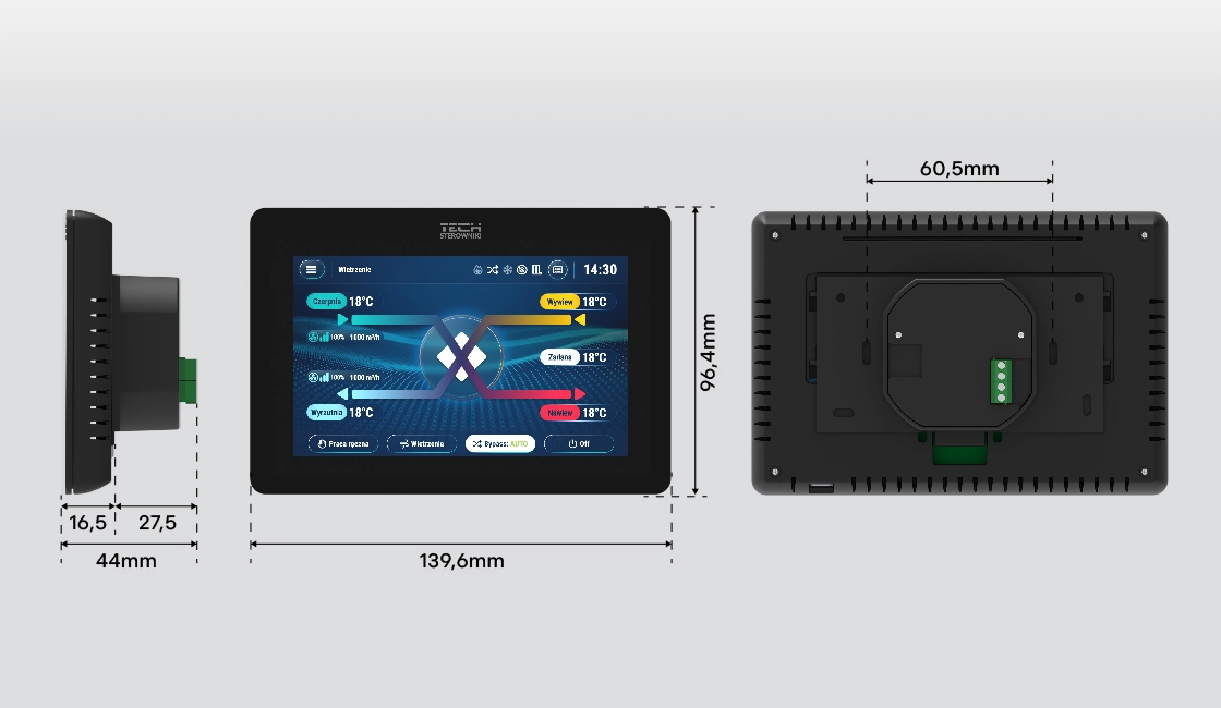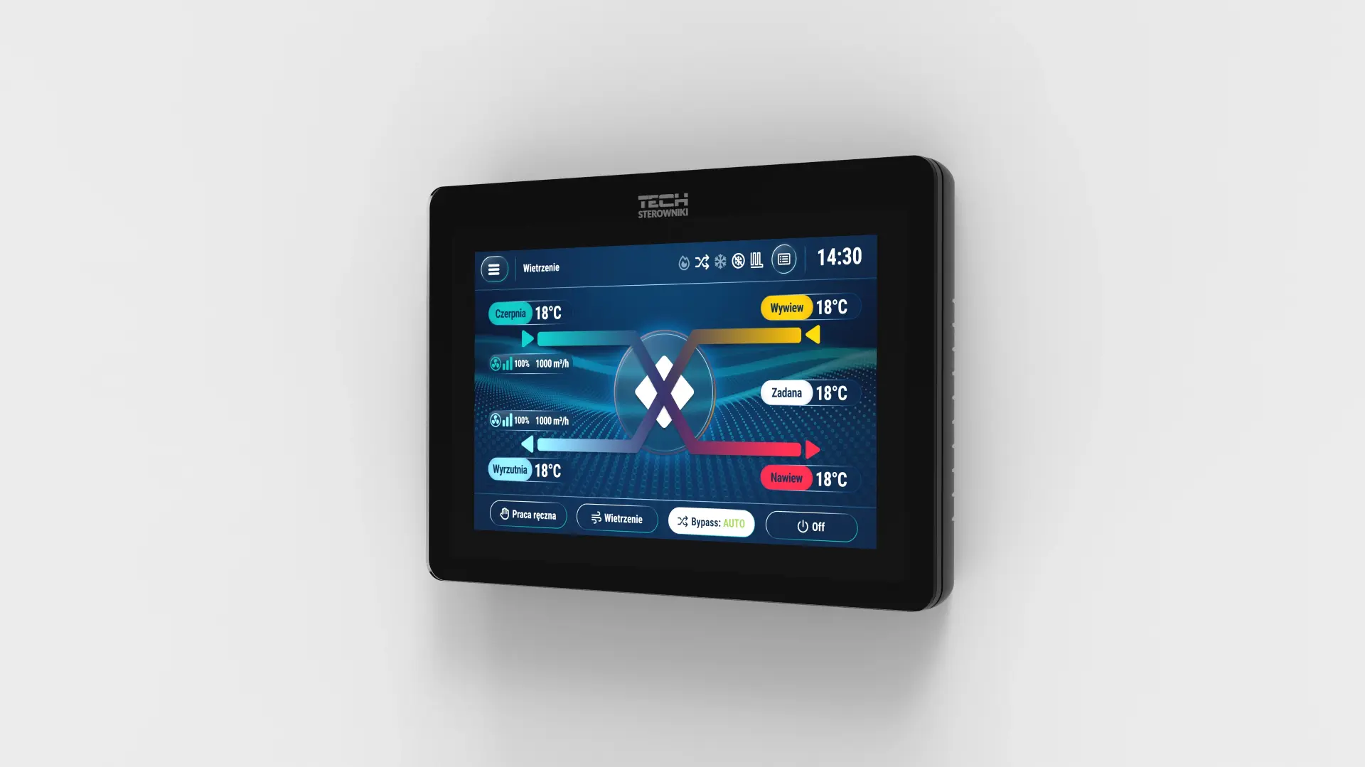 The flush-mount control panel is a modern and minimalist solution designed for user convenience and seamless integration with interior design. Featuring a glass surface with an intuitive touch interface, the panel allows quick and precise control of the ventilation system. The integrated display shows the current operating parameters of the device, while the entire unit has been designed with durability, ease of use, and aesthetics in mind.