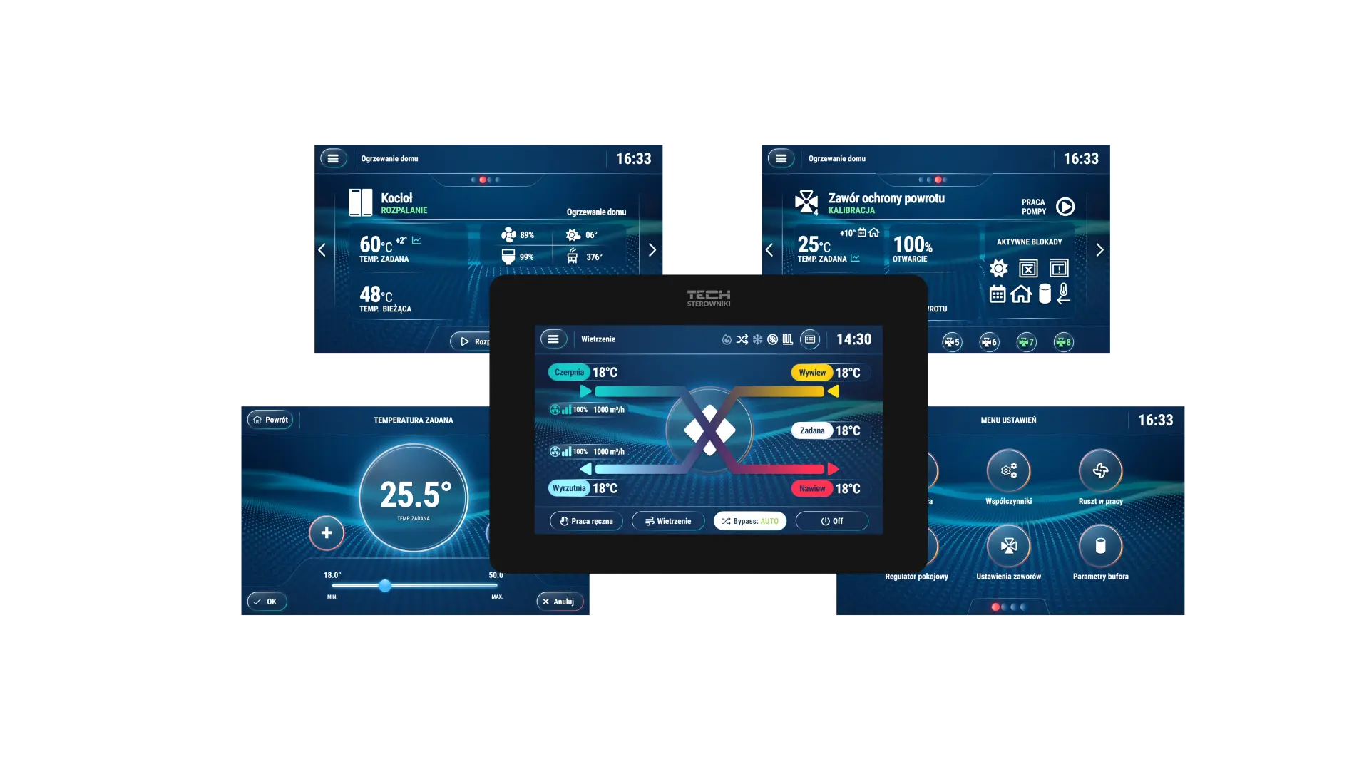 The modern touch-screen panel offers an intuitive menu tailored to both user and installer needs. Thanks to its clear interface, it enables real-time monitoring of device parameters and quick adjustment of settings.