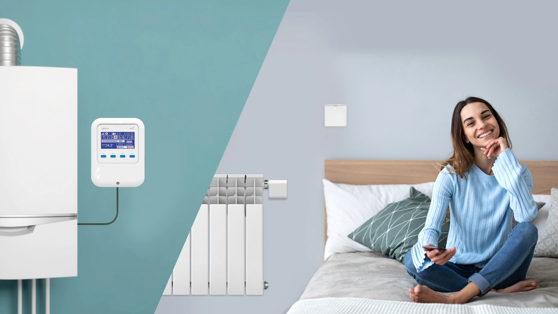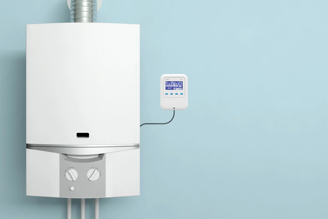 NO/NC Relay Output (e.g., for controlling a heating device that is activated as needed to maintain room temperature). Firmware can be updated via the USB port. Supports an external wireless C-8 zr sensor. Can operate as an internet-enabled two-state room controller.