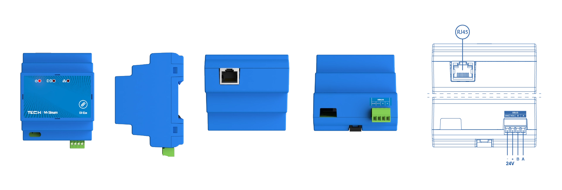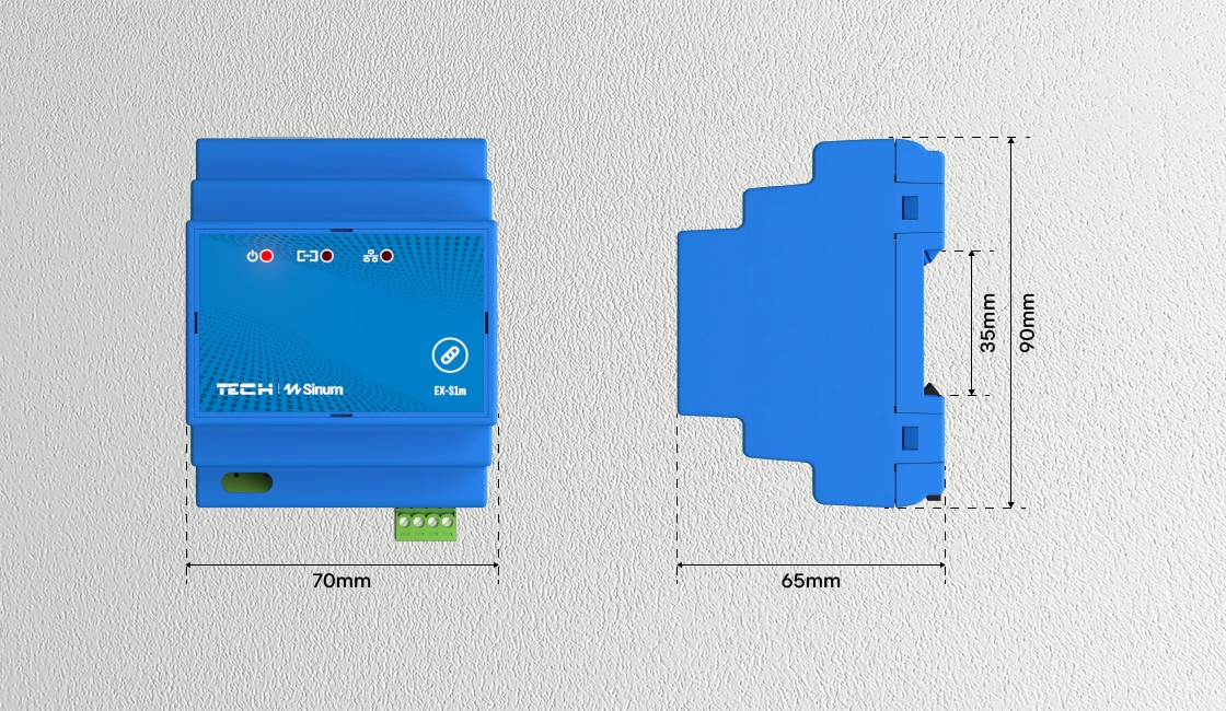 The EX-S1m is a device designed to extend the signal range of peripheral devices. It allows you to expand the operating area of your system. Its primary function is to receive information from connected devices and then transmit it via LAN or WiFi to the main device — the Sinum central unit.