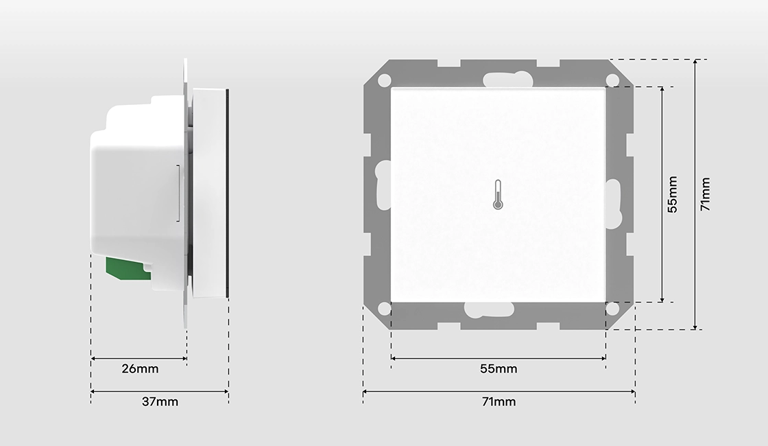 Our devices are designed for easy installation. They require flush-mounting in a 60mm diameter electrical box, ensuring an elegant appearance and discreet integration with the wall.