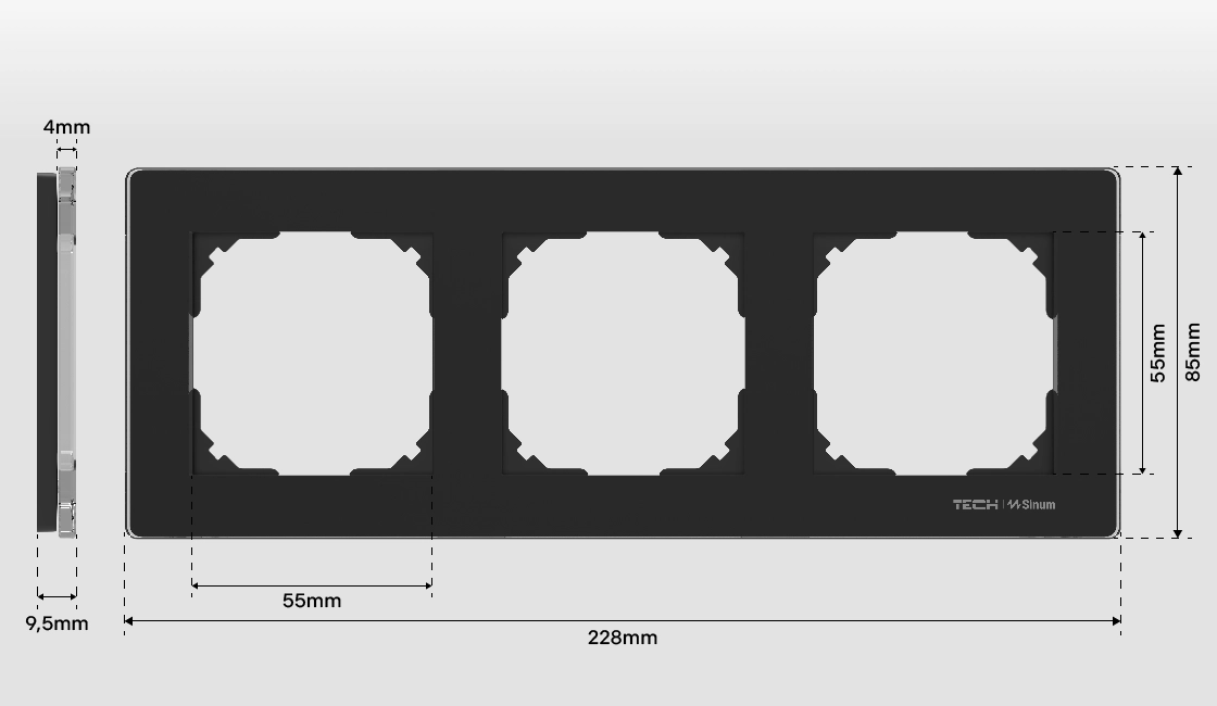 Our glass frames combine elegant design with perfect compatibility with switches, thanks to precisely selected dimensions.