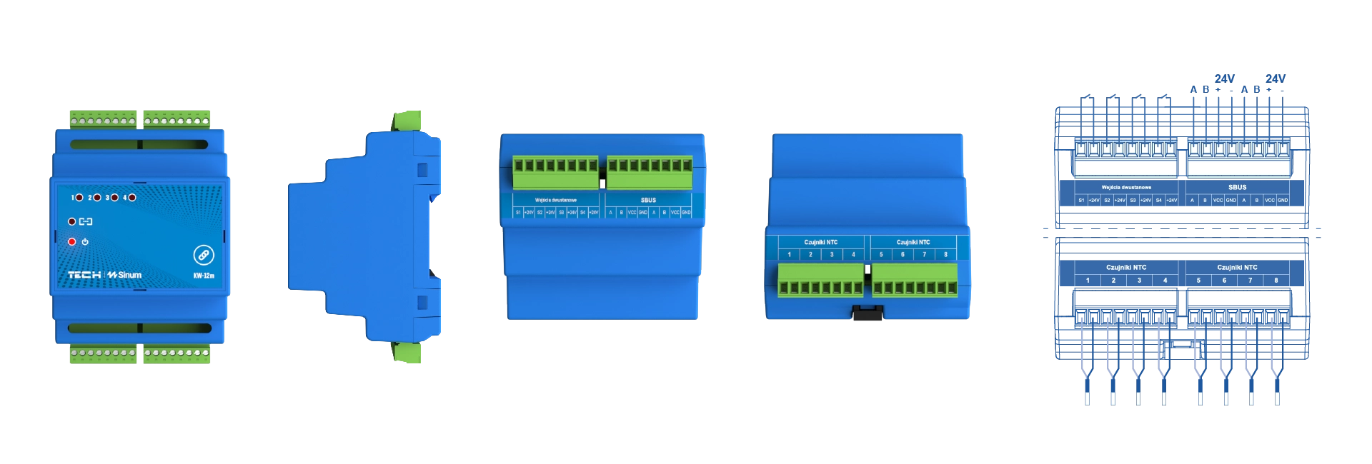 This module expands the Sinum system with additional inputs, such as binary inputs, volt-free contacts, and NTC sensor connections.
