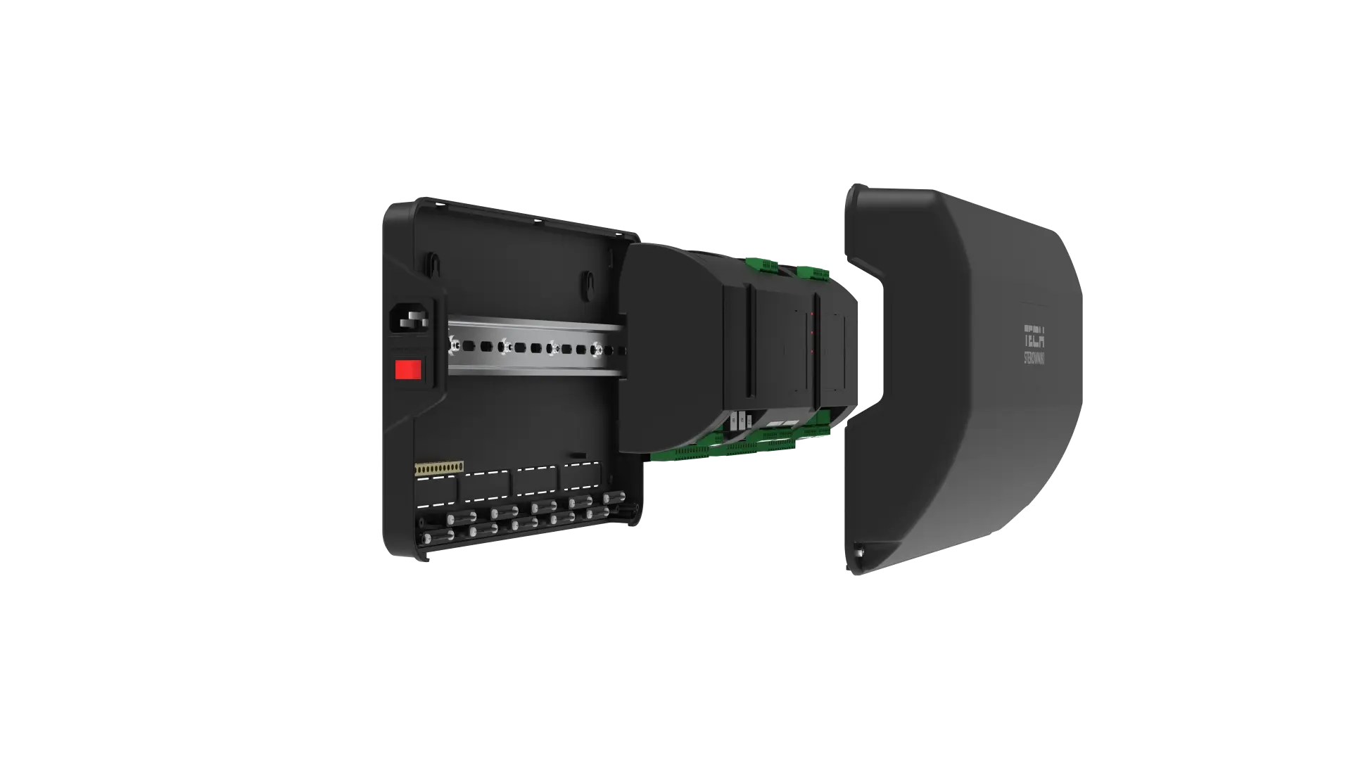 The enclosure has been designed with both functionality and aesthetics in mind – providing an elegant cover for the actuator module while protecting its components. Inside, a standard DIN rail allows for easy and compliant mounting of the device.