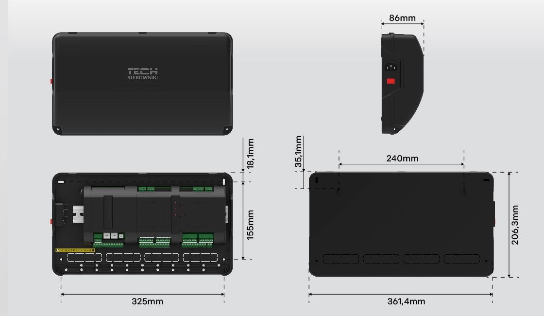 - Dimensions of the external enclosure: 361,4×206,3x86mm
