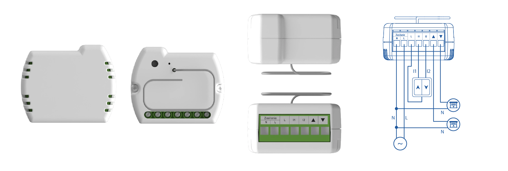 The PPZ-02 is a small device installed inside an electrical box, making it completely hidden. It communicates wirelessly with the Sinum central unit. Once connected, it allows independent control of roller shutters both via the mobile app and manually through the wall switch.
