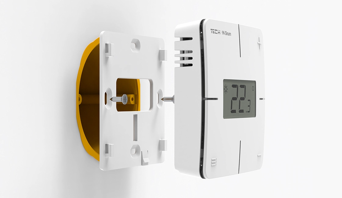 It sends the current temperature to the Sinum central unit, which compares it with the set value and controls heating or cooling. Thanks to the heating/cooling mode, you always have the perfect temperature.