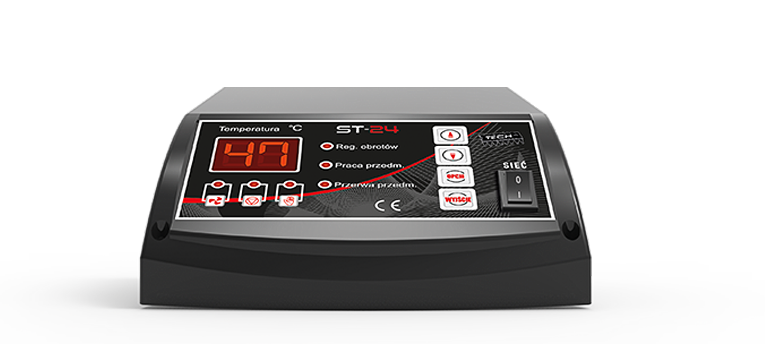 Контроллер ST-24 Sigma предназначен для управления засыпным котлом центрального отопления, оснащенным вентилятором и циркуляционным насосом системы центрального отопления. Его задачей является поддержание заданной температуры при помощи вентилятора. Вентилятор имеет 9-ть скоростей и работает быстрее или медленнее, в зависимости от установленных параметров в контроллере и от температуры в котле. Корпус предназначен для монтажа на котле.