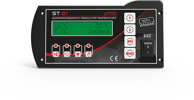 Контроллер ST-81 zPID предназначен для управления котлом с ручной загрузкой топлива, оснащенным вентилятором. Контроллер ST-81 zPID управляет насосом центрального отопления, насосом горячего водоснабжения, а также работой вентилятора наддува. Основной задачей данного контроллера, является поддержание заданной температуры теплоносителя на выходе из котла, при помощи изменения и поддержания необходимой скорости вращения вентилятора. Контроллер обеспечивает плавную регулировку частоты вращения вентилятора, мощность которого может изменятся от 0-100%. В зависимости от установленных пользователем параметров, фактической температуры теплоносителя на выходе из котла, а также температуры топочных газов, контроллер увеличивает или уменьшает скорость вращения вентилятора, обеспечивая более точное, заданное пользователем, значение температуры на выходе из котла. Благодаря функционалу данного контроллера, имеется возможность выбора одного из четырех режимов работы насосов: отопление дома, приоритет бойлера, параллельные насосы, летний режим. Благодаря наличию данной функции, управления температурой в помещении становится наиболее комфортным. Корпус выполнен из металлического материала и предназначен для скрытого монтажа в котле.