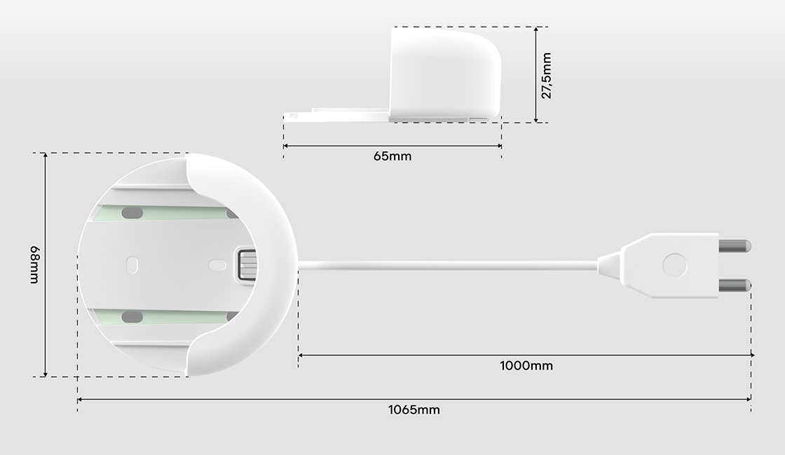 - Безпечне та естетичне встановлення - кабель датчика підключається безпосередньо до розетки, що забезпечує акуратне підключення до джерела живлення.
