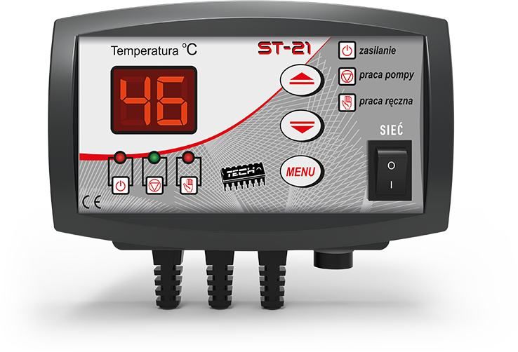 Контролер EU-21 зі світлодіодним дисплеєм призначений для керування насосом водяного контуру центрального опалення. Завданням контролера є ввімкнення насоса при досягненні заданого значення температури і вимкнення - при охолодженні котла нижче заданого значення на величину встановленого гістерезису. Такий режим роботи запобігає зайвій роботі насоса, що дозволяє економити електроенергію, а також продовжує термін служби насоса і підвищує його надійність. Контролер EU-21 може також виконувати функції термостата, вимикаючи насос при досягненні заданої температури. Контролер також має функцію ANTISTOP, яка запобігає зупинці циркуляційного насоса в міжсезоння (насос вмикається приблизно кожні 10 днів на 1 хвилину). Додатковим захистом є функція антизамерзання, яка запобігає замерзанню води в системі (коли температура опускається нижче 6°C, насос вмикається постійно).