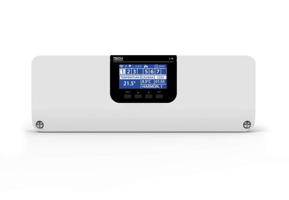 Планка EU-L-9r - це пристрій, який може керувати до 50 електроприводами, керувати опалювальним приладом, охолоджувати поверхню та керувати підлоговим насосом. Змішувальним клапаном можна керувати за допомогою додаткового модуля. Завдяки свідомому управлінню в приміщеннях буде підтримуватися тепловий комфорт без надмірного споживання енергії.