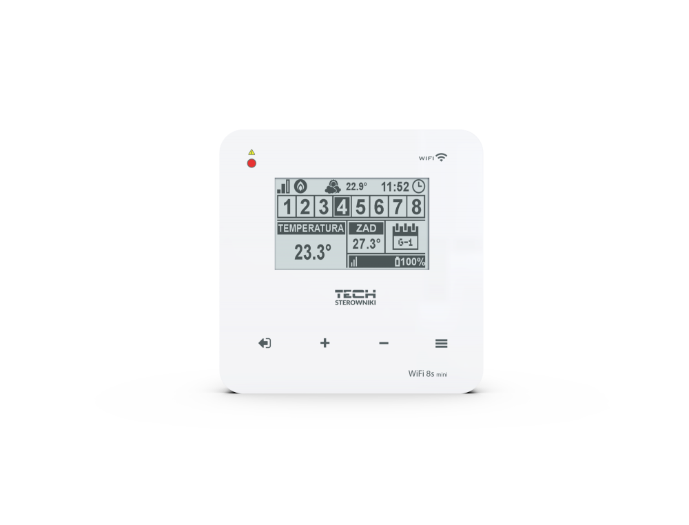 Zamontowany w danym pomieszczeniu czujnik lub regulator temperatury przekazuje informację o temperaturze do sterownika głównego WiFi 8s mini. Gdy jest niższa niż ustalona w algorytmie pracy, sterownik główny włącza styk dodatkowy, by urządzenie grzewcze rozpoczęło pracę w celu dogrzania pomieszczenia, a także przesyła sygnał do zamontowanych w strefach termostatów grzejnikowych WiFi, by otworzyć zawór. Użytkownik ma do wyboru dwa modele bezprzewodowych termostatów grzejnikowych: STT-868 oraz STT-869. Sygnał jest przekazywany do sterownika głównego drogą radiową.